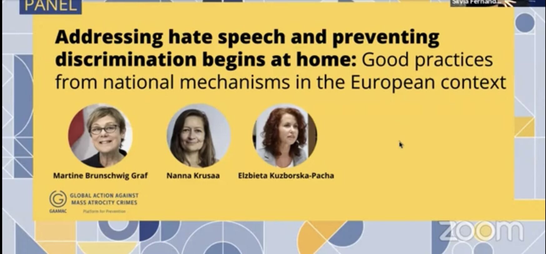 It was a pleasure to participate in Global Action Against Mass Atrocity Crimes (GAAMAC) panel Addressing hate speech and preventing discrimination.Effective policy approaches to address racism should begin at the highest political level, and be complemented with a practical, concrete actions within local communities, regions and international institutions.